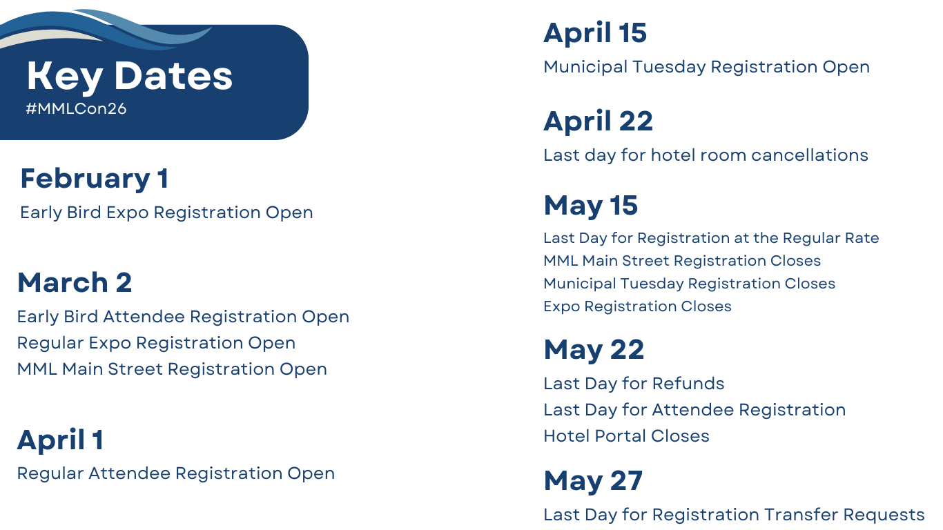 We have been alerted to possible fraudulent activity by individuals falsely claiming to represent the Maryland Municipal League (MML). These individuals offer hotel bookings, exhibitor services, and/or attendee lists. Please disregard any such calls or emails. The Maryland Municipal League has partnered exclusively with Conference Direct for featured hotel reservations and ARATA for expo management. No other third-party organizations represent our services or events. Connect Today in MDCommUnity |